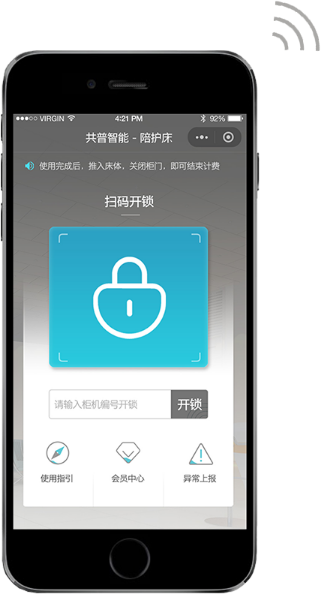 • 針對(duì)住院陪護(hù)時(shí)陪護(hù)人員健康休息的老大難問(wèn)題,共普智能研發(fā)的共享陪護(hù)床,通過(guò)手機(jī)小程序、公眾號(hào)、APP客戶端聯(lián)通共享陪護(hù)床設(shè)備,通過(guò)手機(jī)掃碼的方式,簡(jiǎn)單便捷、自愿自管的方式,輕松解決陪護(hù)休息的大難題。